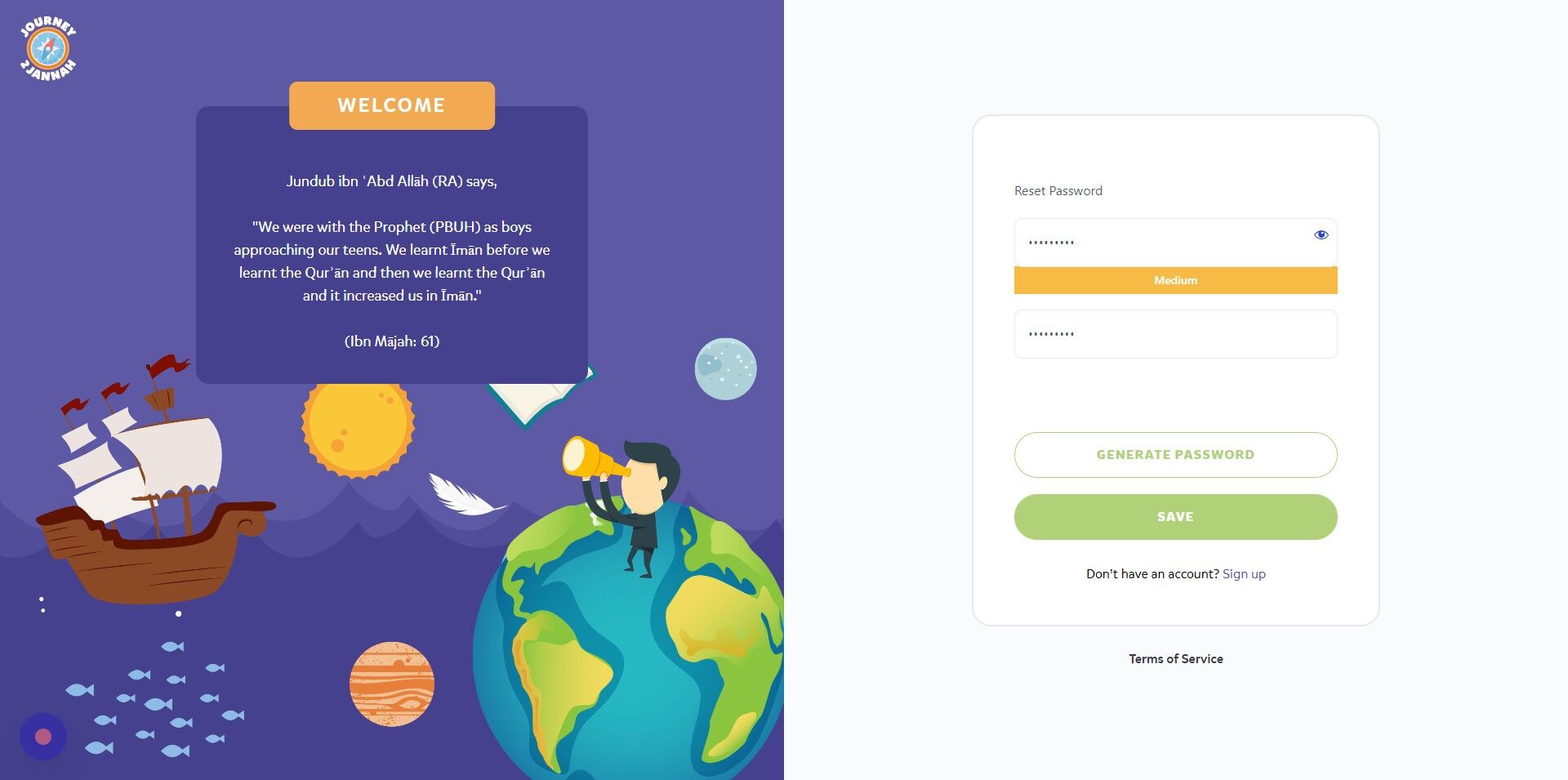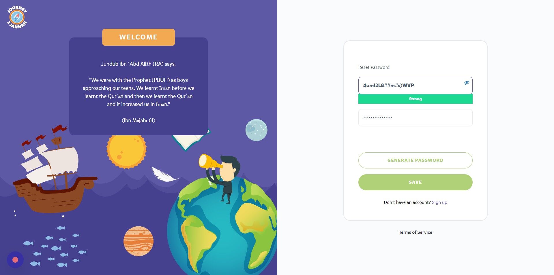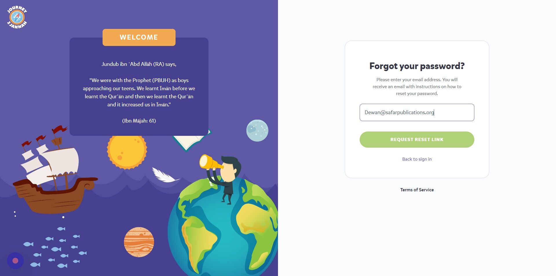 1. Navigate to https://my.journey2jannah.com/login/