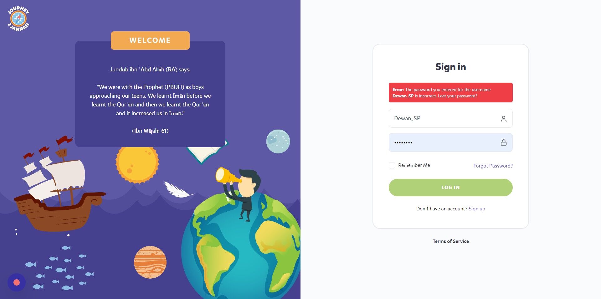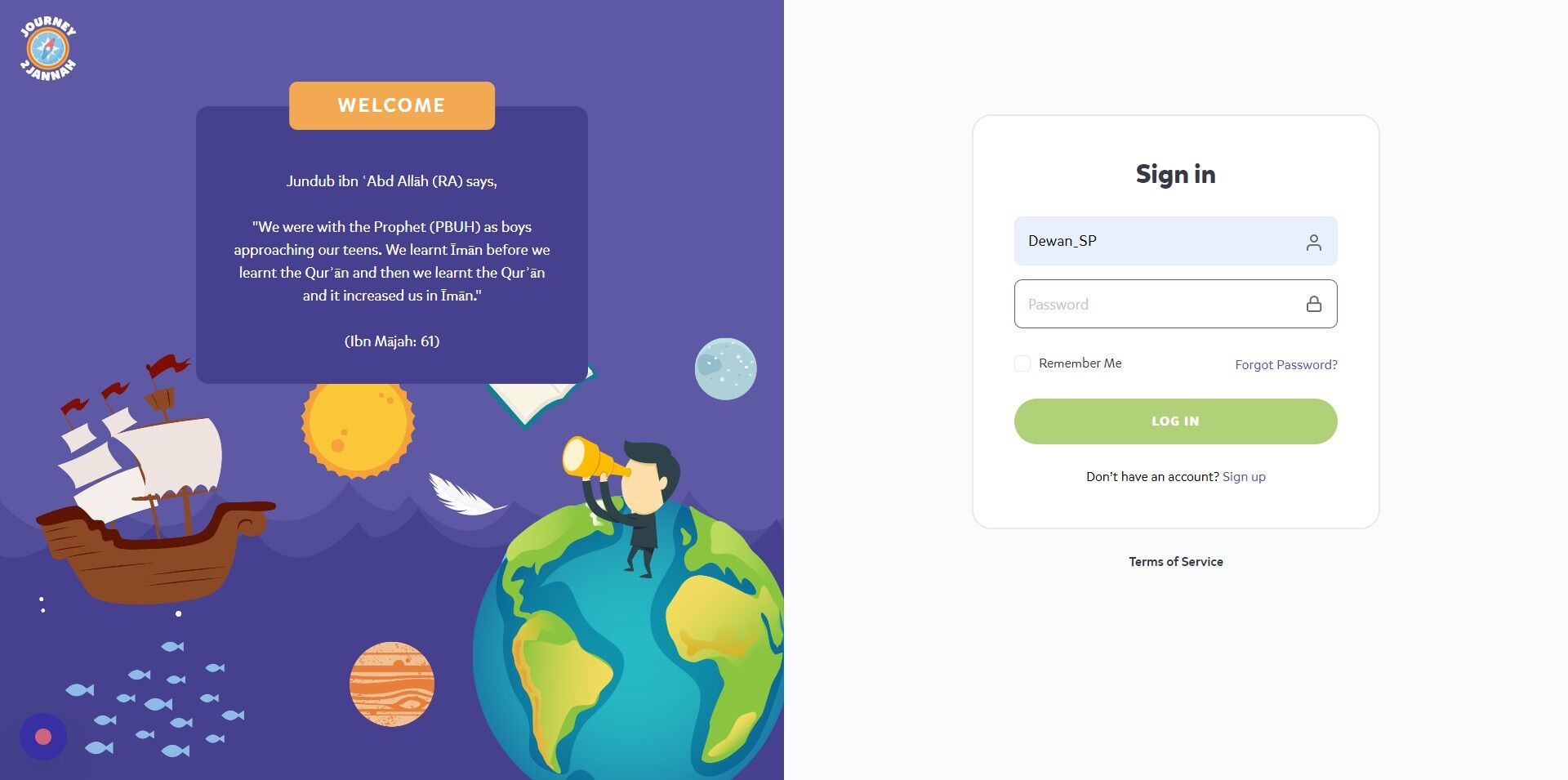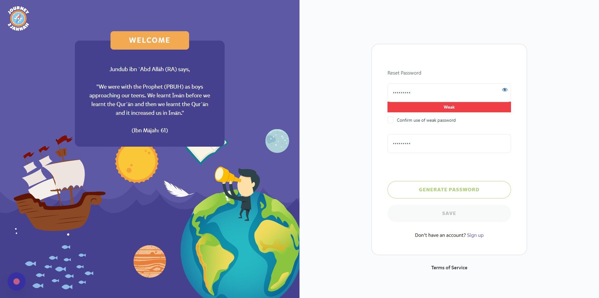 1. Navigate to https://my.journey2jannah.com/login/