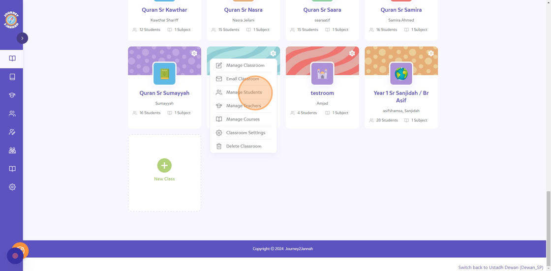 1. Navigate to https://my.journey2jannah.com/manage-classroom/