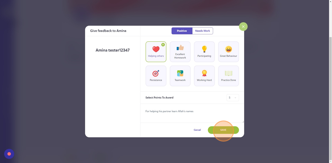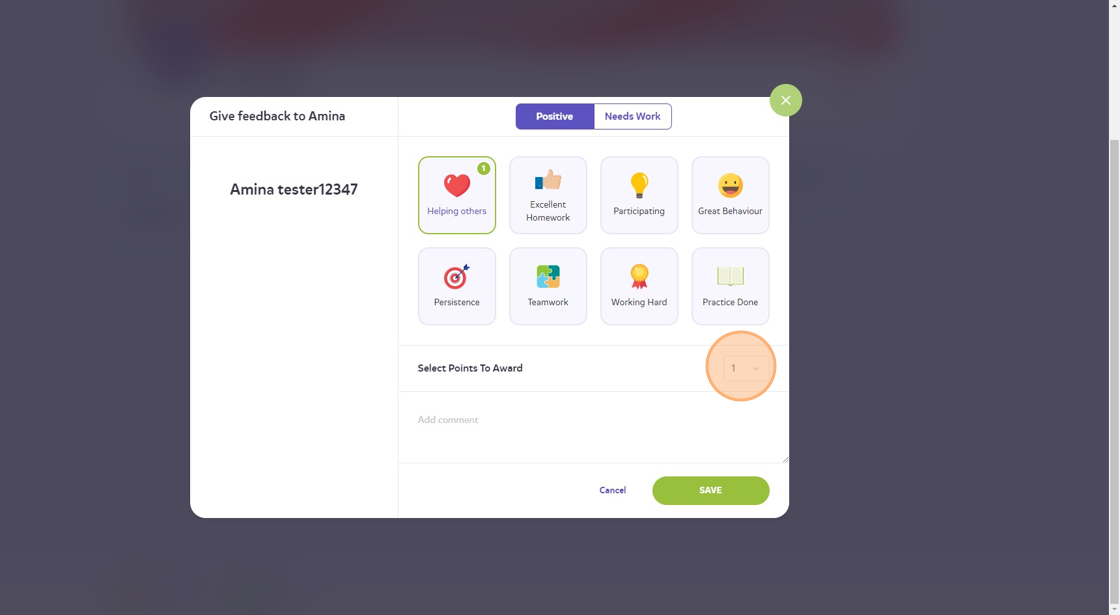 7. Click on the dropdown next to 'Select Points To Award' to decide how many points you want to give.
