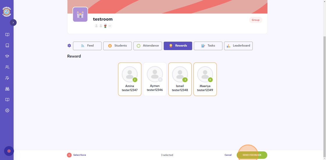 11. Choose the students you want to give the points to and then click "SEND FEEDBACK"