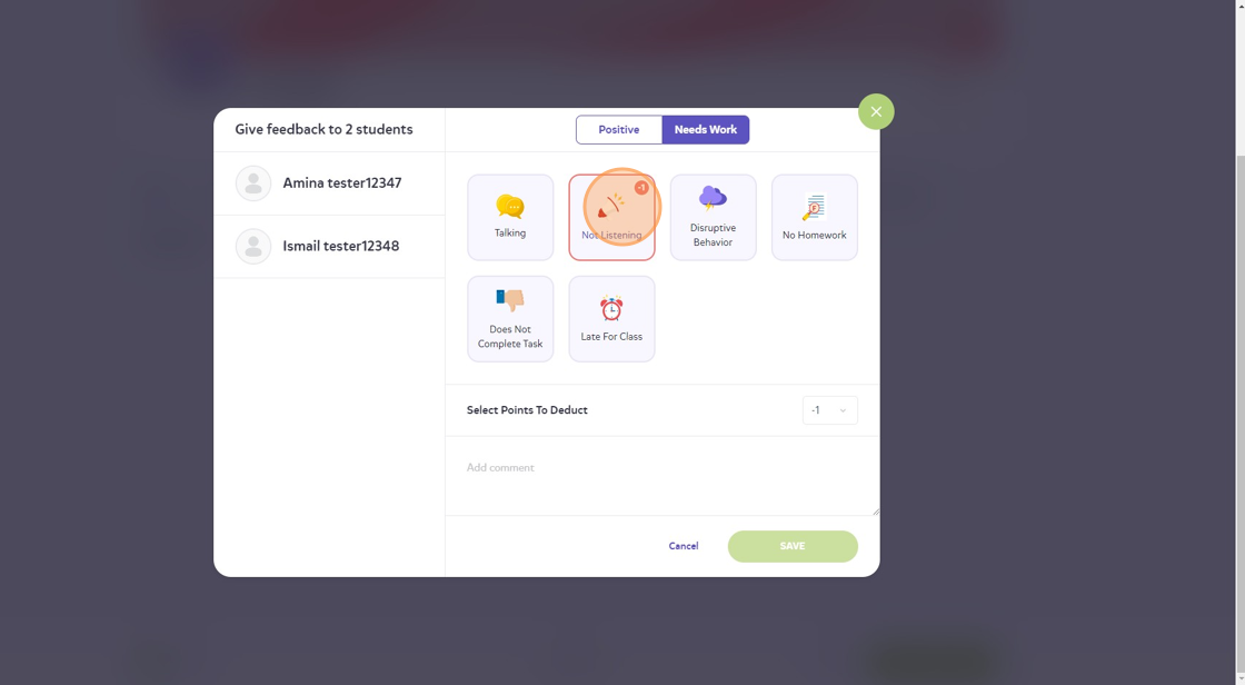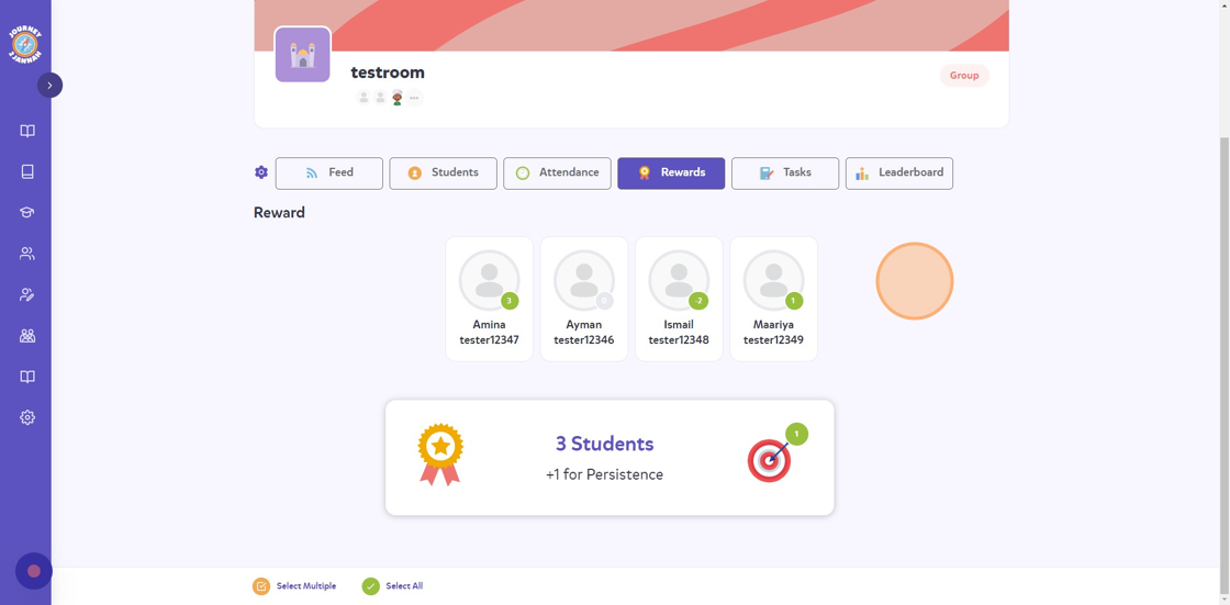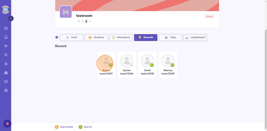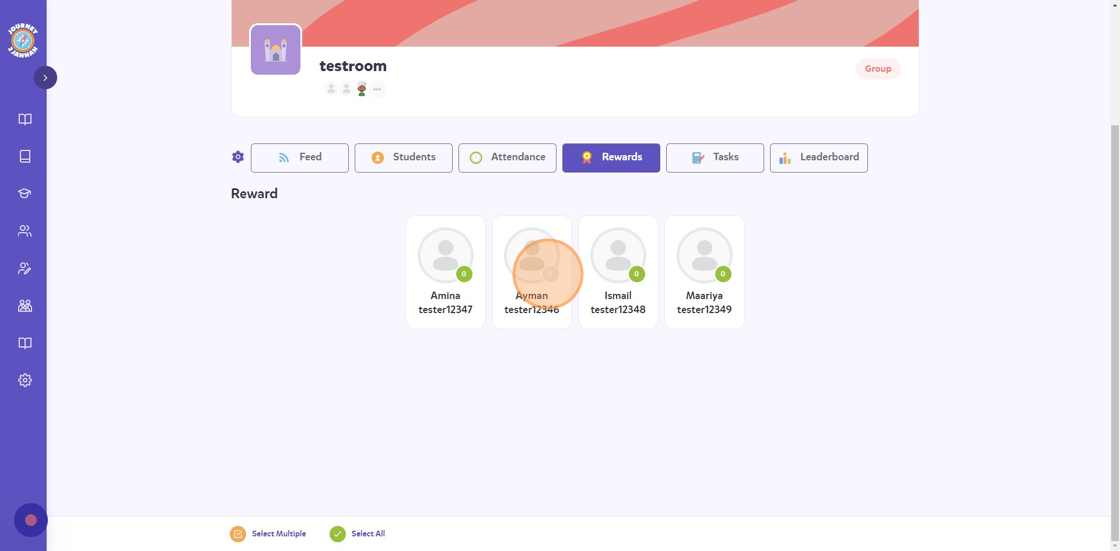 10. You can also give more than 1 student a reward/negative point by clicking on "Select Multiple" at the bottom.