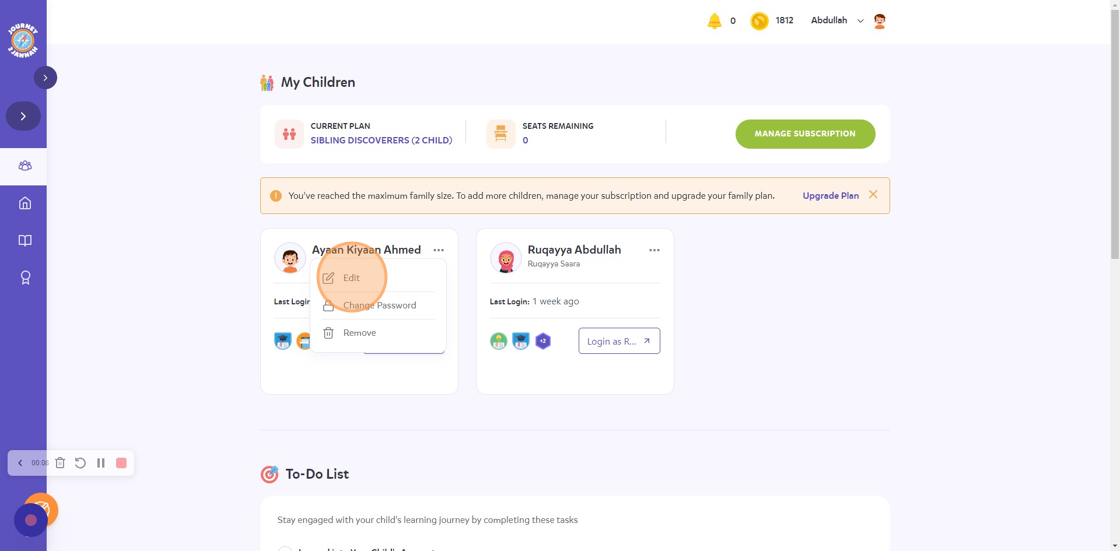2. Navigate to https://my.journey2jannah.com/manage-family/