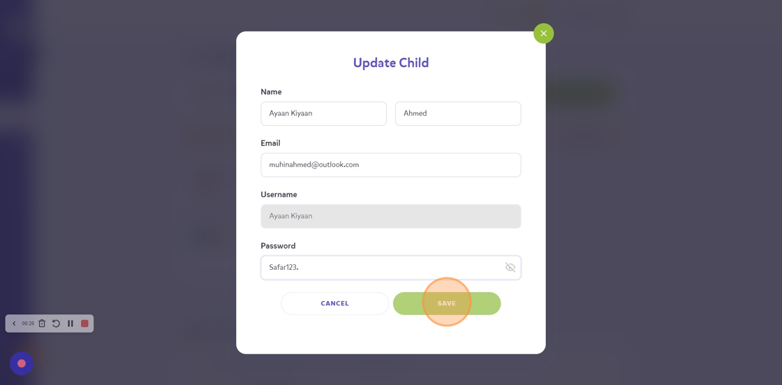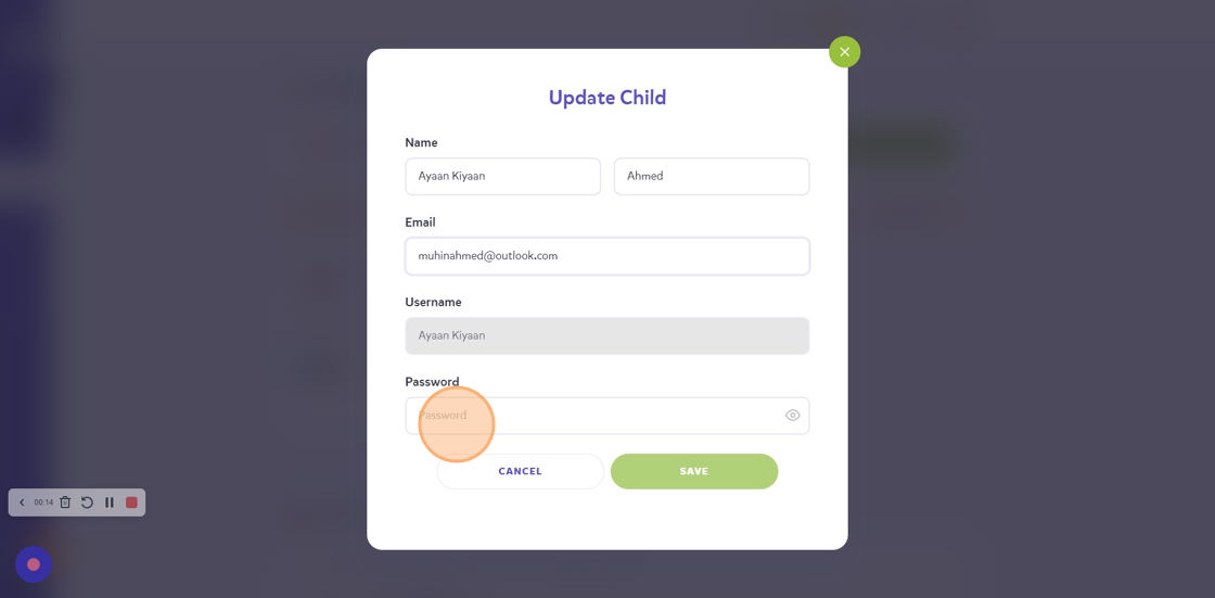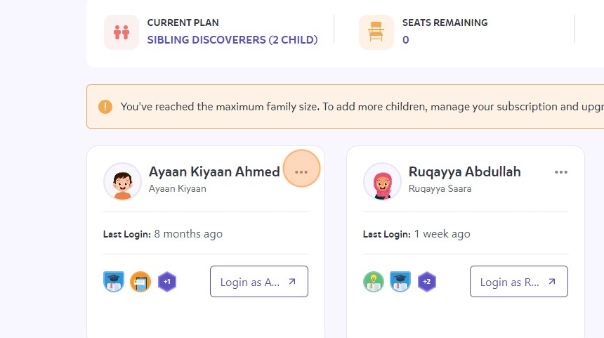 3. Click on the 3 dots icon for the child you want to change the password for.
