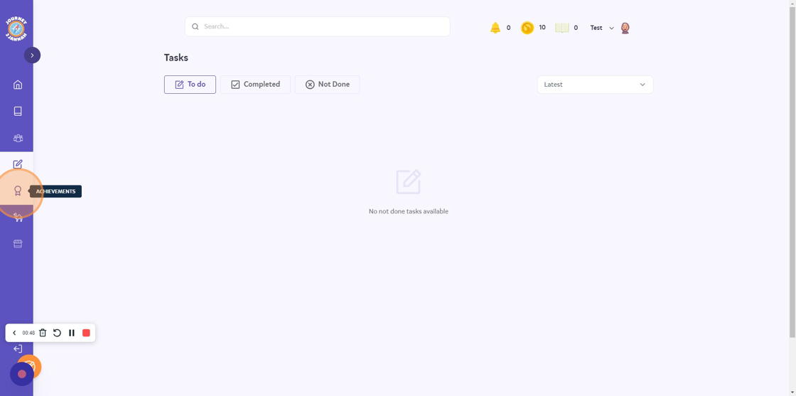 10. These will be the tasks that your parent has given you. The next icon on the left hand panel is 'Achievements'. You can click on this.