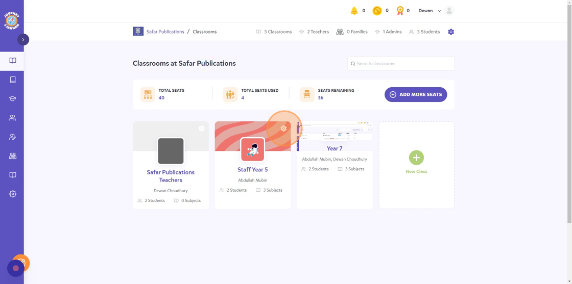2. Click on the settings icon (top right hand corner) on the classroom you would like to email