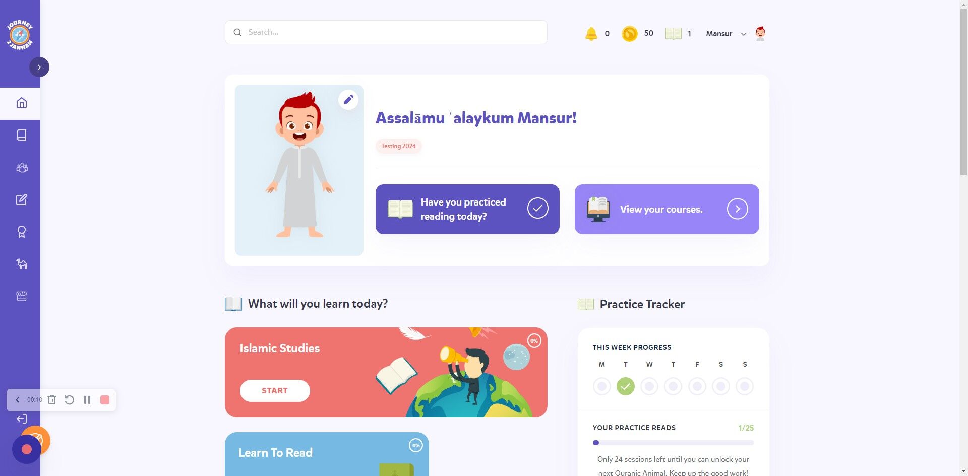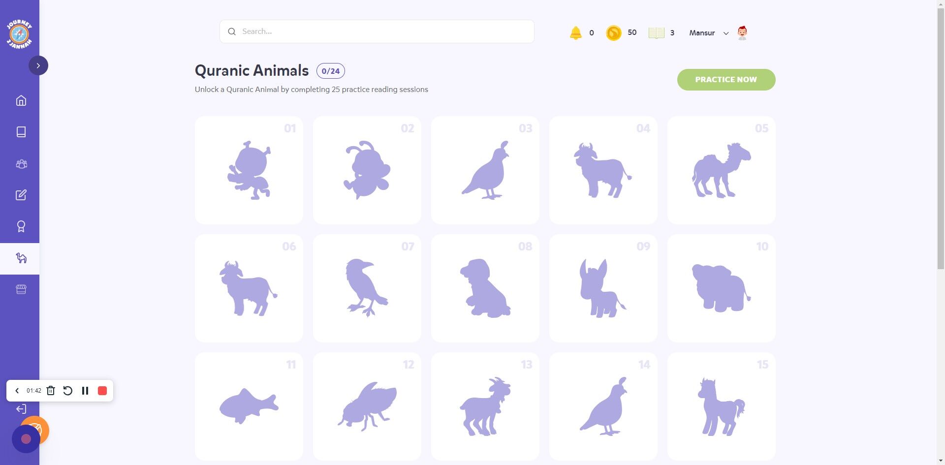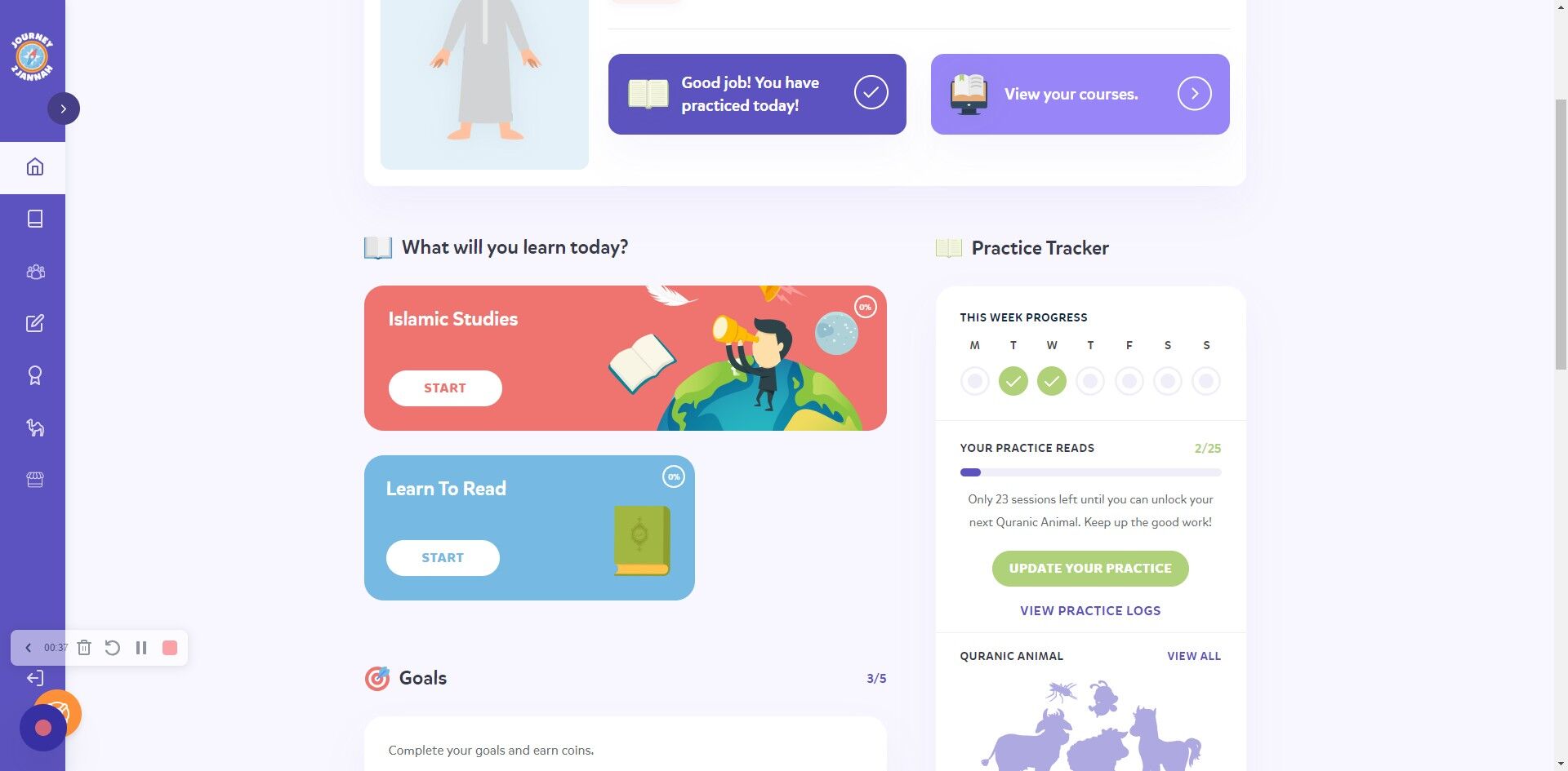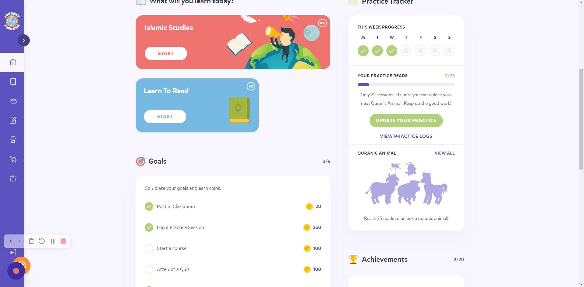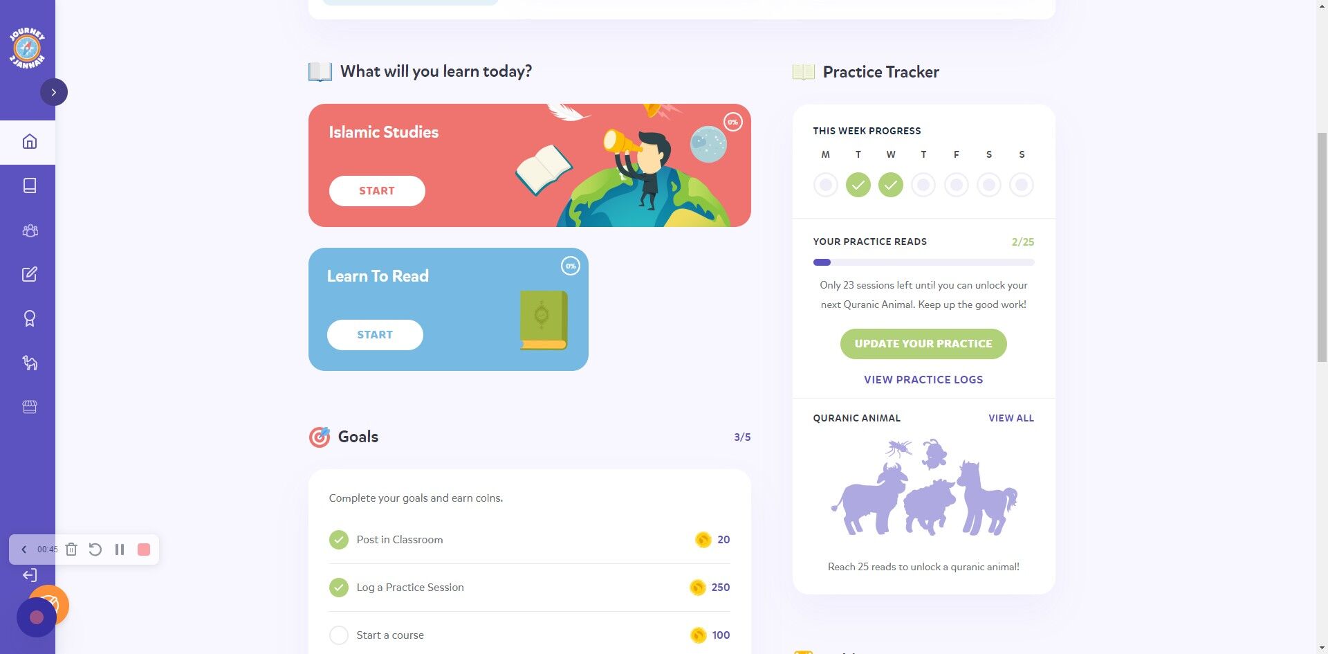 Features: Track and Update Quran Reading Practice & Unlock Quranic Animals