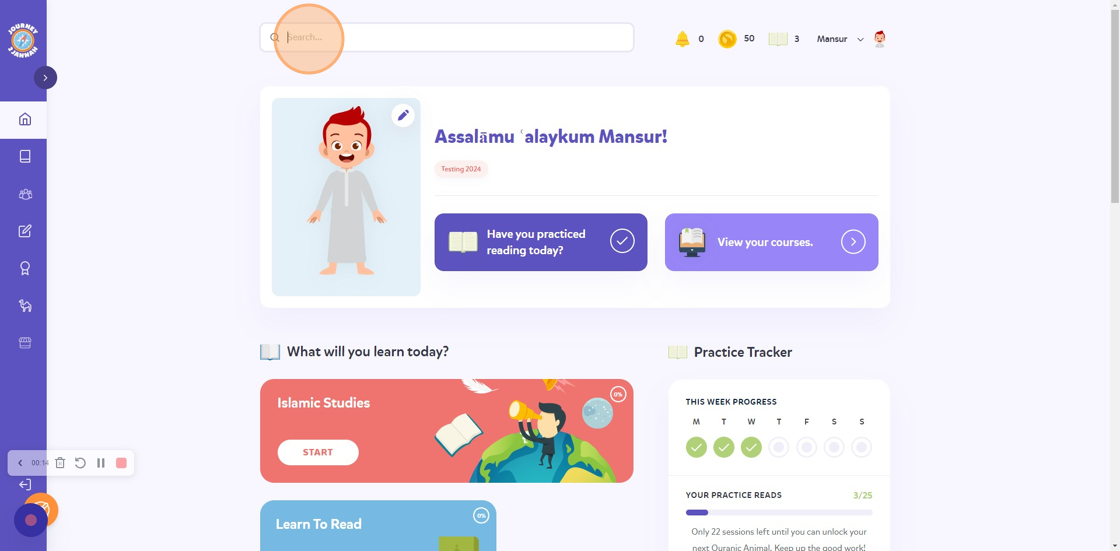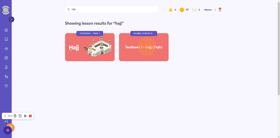 2. Click the "Search..." field. Search for the lessons you would like. I want the 'Hajj' lesson.