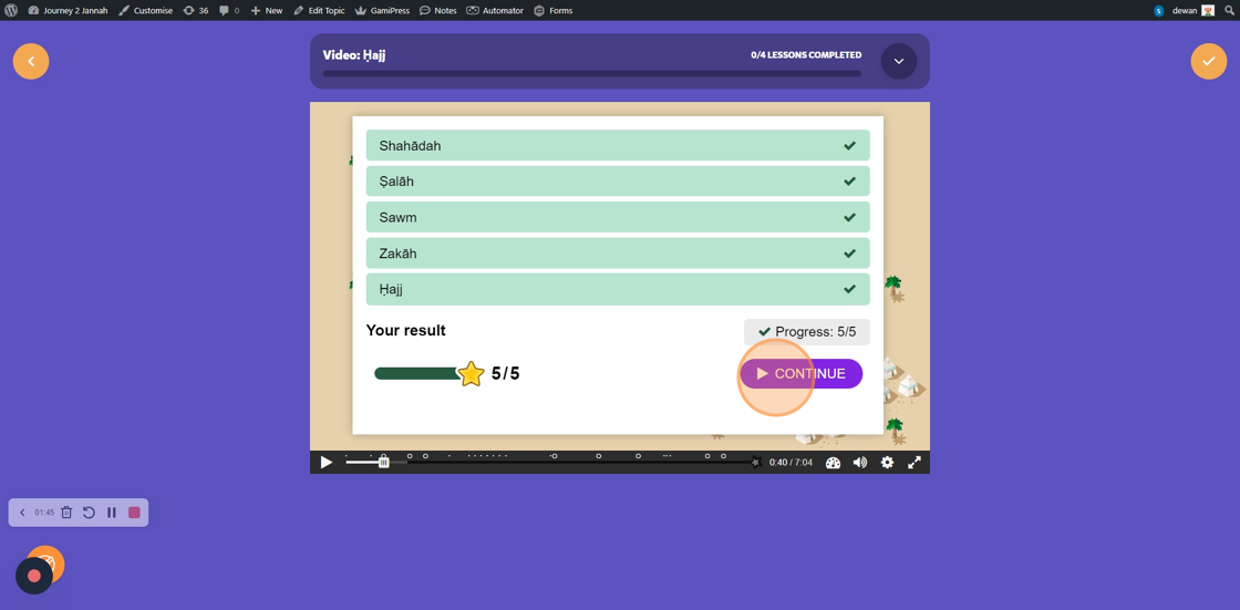 Tip: This article will show you how to navigate through a lesson on Journey2Jannah. You can also watch this video to help.
