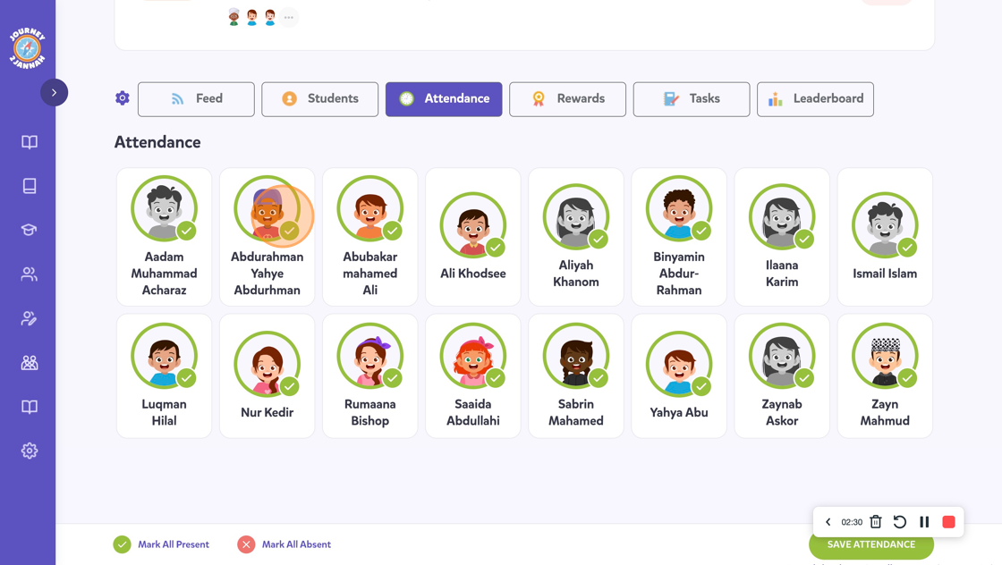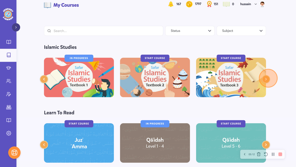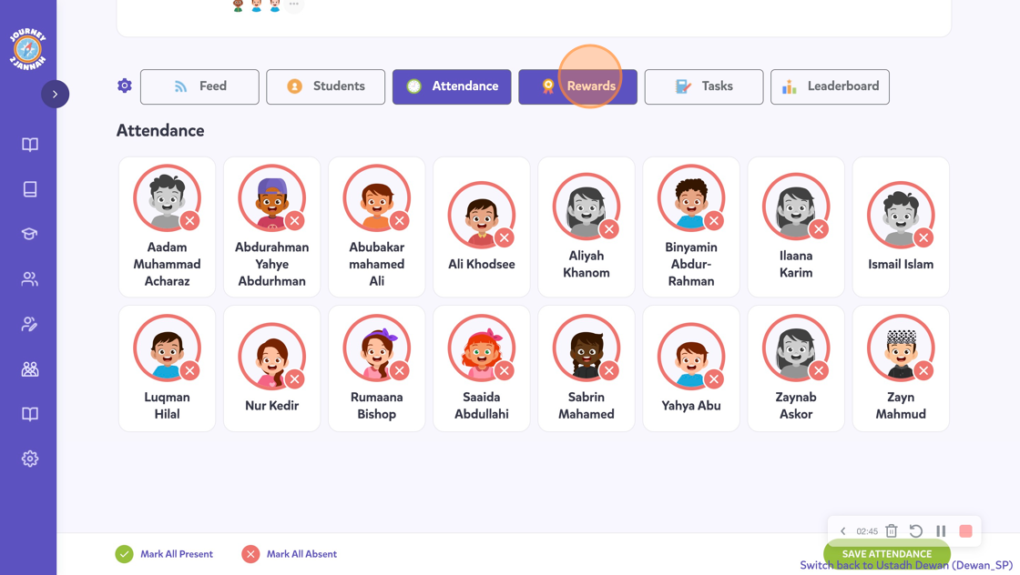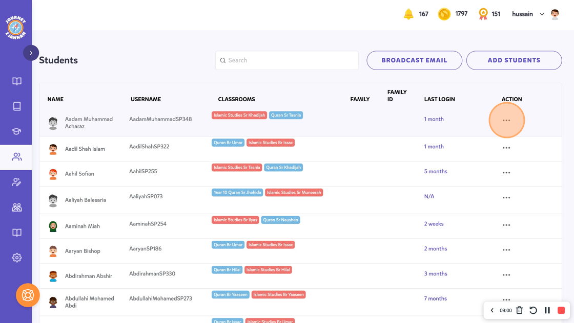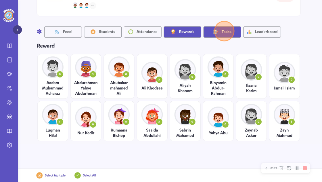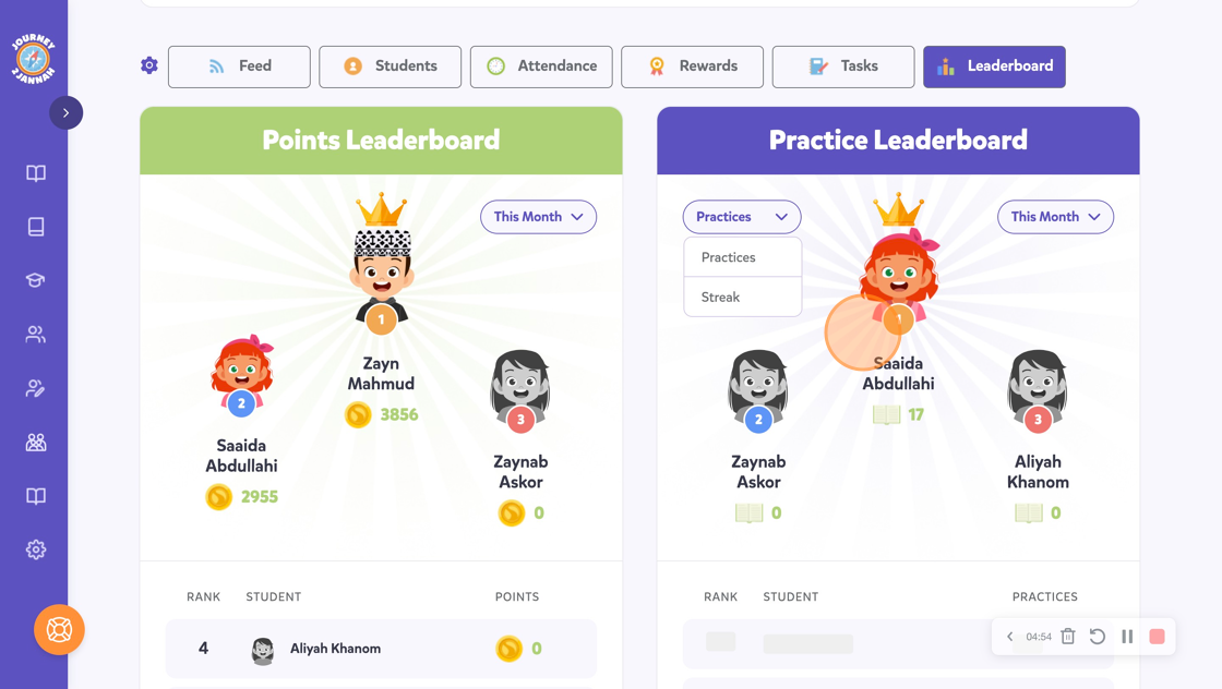 24. The leaderboard allows you to see which students are the most engaged and getting the coins from their learning. It also shows you the children who are logging their Quranic reading at home. You can identify your star students through this way. This is at your discretion.