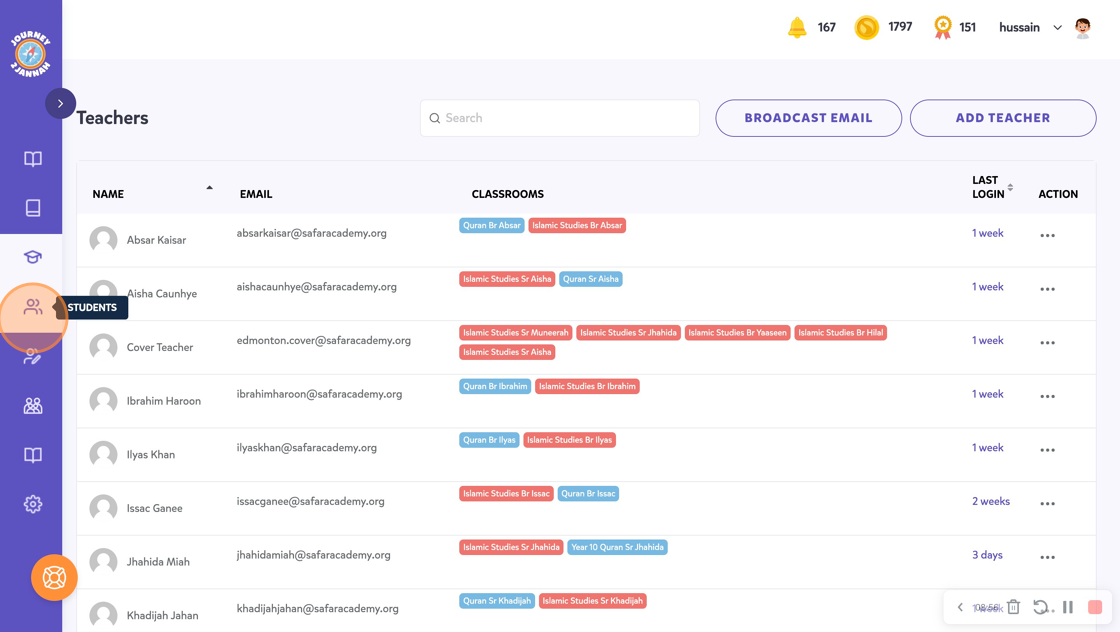 1. Navigate to https://my.journey2jannah.com/manage-classroom/